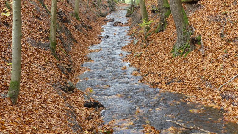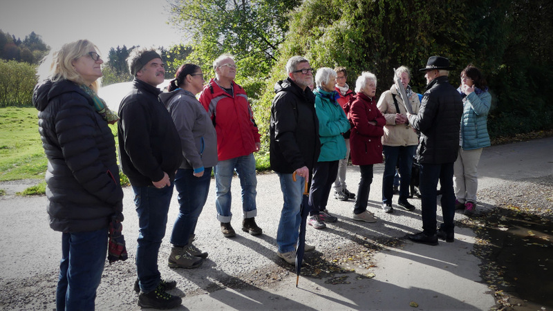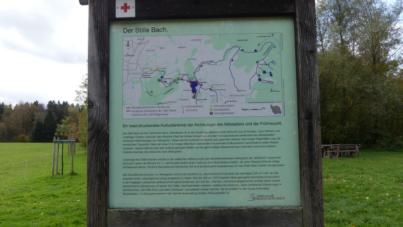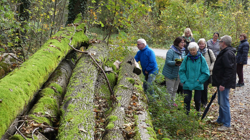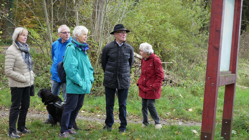 Auf einem weichen bunten Buchenlaubteppich gingen wir am „Stillen Bach“ entlang. Dieser ist sehr schön angelegt und sieht ein bisschen aus wie der Krummbach in Ochsenhausen. Links war teilweise eine hohe Felswand und rechts ging es runter in eine Schlucht. Das Gewässernetz des Stillen Bachs gehört zu den ältesten Kanalsystemen in Deutschland. Es wurde von Benediktiner-Mönchen im Mittelalter zur Wasserversorgung des Klosters Weingarten fachmännisch angelegt und ist bis zum heutigen Tag nahezu unverändert erhalten geblieben. Die Fläche des Gewässernetzes beträgt rund 25 km² und umfasst zehn Kanäle sowie etwa 20 Weiher. Der Weg führte uns dann weiter zum Rößler Weiher den wir dann auf einem abwechslungsreichen Weg umrundeten. Wir kamen am ehemaligen Hofgut der Benediktiner-Mönche dem Rößler Hof vorbei, dieser ist jetzt ein Biohof und wird nicht mehr vom Kloster bewirtschaftet. Der Rößler Weiher ist ein idyllischer Stausee der der Fischzucht dient. Entlang dem Westufer haben wir den Auslauf des Weihers erreicht und ab da ging es auf Wiesenwegen zurück in den Wald und wieder am „Stillen Bach“ entlang zurück zum Parkplatz am Freibad. Das Wetter meinte es gut mit uns, denn es blieb bis zum Schluss trocken und erst als wir in die Autos einstiegen fing es an zu regnen.